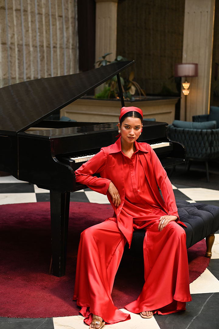 Red Zardosi Butta Silk Kurta Set With Dupatta